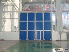 The door panel is built up by steel structure and surface coating board. The steel structure is built up by welding from rectangular tubes.